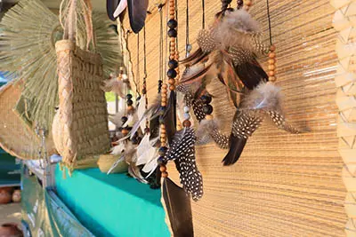 A feira celebra as expressões artísticas dos povos originários em um mês dedicado à sua valorização e reúne representantes dos povos Tupinambá, Tumbalalá, Pataxó Hã-Hã-Hãe, Kariri-Xocó, Xuku-Kariri, Kiriri, Pataxó, Tuxá, Xukurú, Funiô, Kaimbé, Tapuya e Tuxi. Quem visitar o espaço poderá dialogar diretamente com os criadores e adquirir peças únicas, que unem tradição e criatividade em uma variedade de técnicas e materiais nativos. São adornos corporais com sementes, maracás, colares, cerâmicas com pigmento de tauá, entalhes em madeira, trançados em fibras naturais, instrumentos musicais e muito mais.