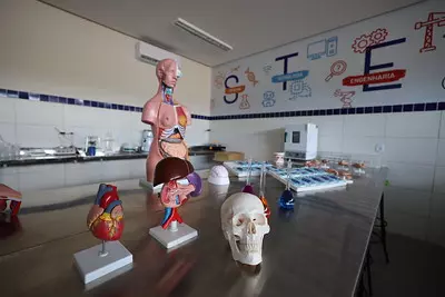 A nova escola, a 79ª inaugurada de 2023 até agora, conta com uma infraestrutura moderna e completa, incluindo dez salas de aula, biblioteca, dois laboratórios, restaurante estudantil, teatro, pátio coberto, quadra poliesportiva coberta e campo de futebol society com pista de atletismo, garantindo um ambiente propício para o aprendizado e desenvolvimento dos estudantes.