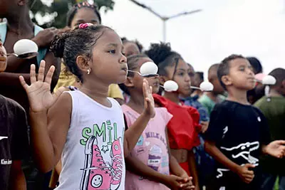 A distribuição de ovos e bombons de chocolate foi um dos momentos mais aguardados, especialmente pelas crianças da comunidade do Abaeté, que participaram com entusiasmo das brincadeiras ao longo do dia. A principal atração, no entanto, foi o sorteio de cestas de Páscoa, realizado ao final da programação infantil.